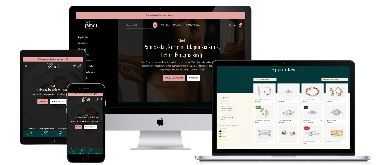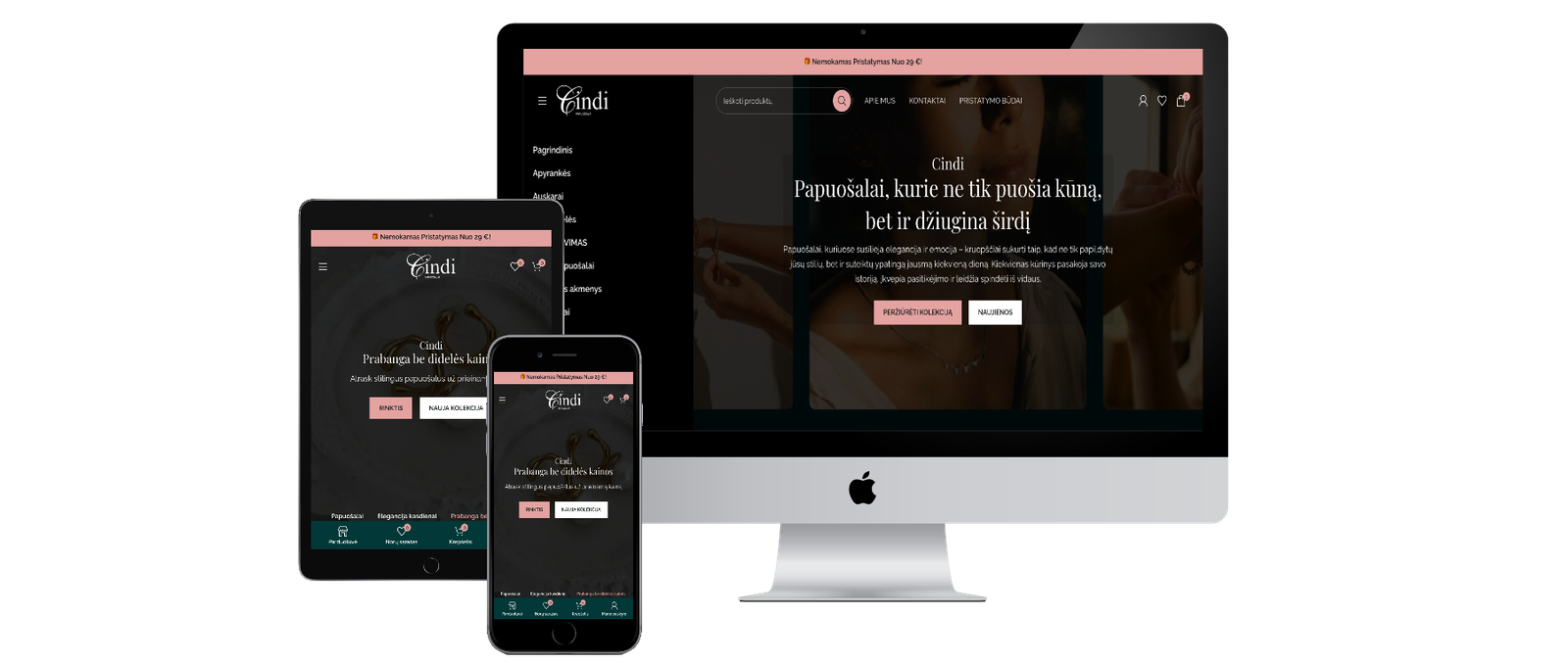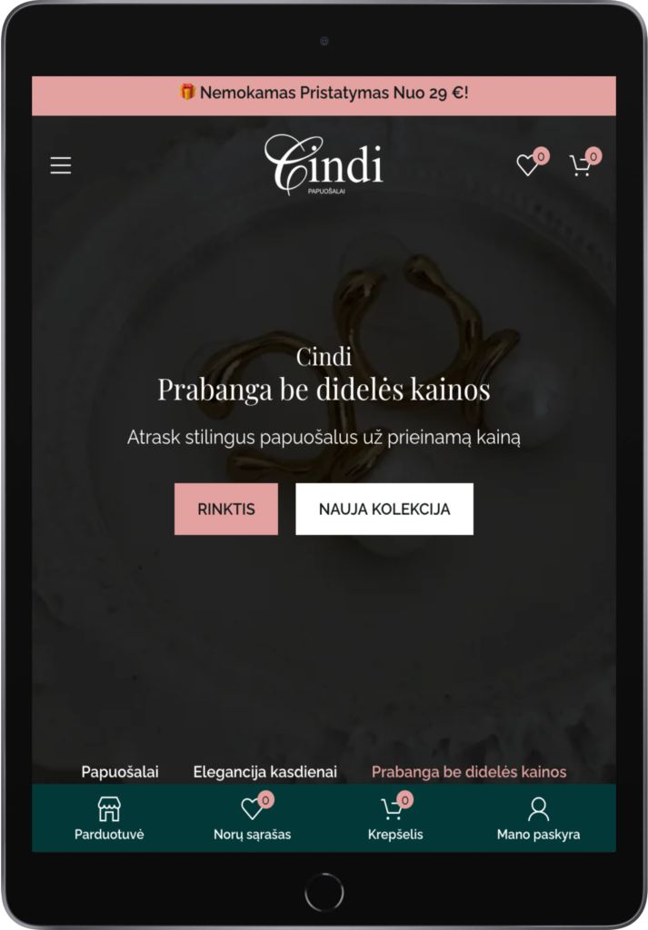 MB Aliweb (Alisa Web Design) tikslas šiame projekte buvo sukurti modernią, estetišką ir konversijoms paruoštą papuošalų elektroninę parduotuvę Lietuvoje, kuri ne tik sustiprintų Cindi vizualinį identitetą, bet ir turėtų tvirtą pagrindą SEO augimui, mobiliam patogumui bei tolimesnei plėtrai.