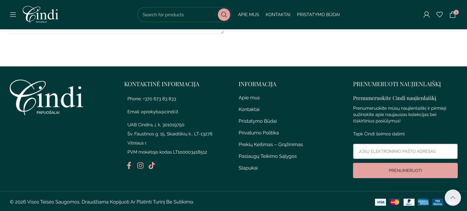 Šio tipo projekte rezultatai vertinami ne vien per estetiką, bet ir per tai, kaip svetainė padeda verslui parduoti, komunikuoti ir augti. Cindi svetainės viešai matoma versija rodo, kad elektroninė parduotuvė buvo struktūruojama kaip pilnavertė pardavimo platforma: su išskirtomis kategorijomis, aiškiais CTA mygtukais, produktų sąveikos elementais, socialiniais kanalais ir kontaktine informacija. Tai sudaro tvirtą pagrindą ne tik vartotojo patirčiai, bet ir tolimesniam SEO bei konversijų optimizavimui.
