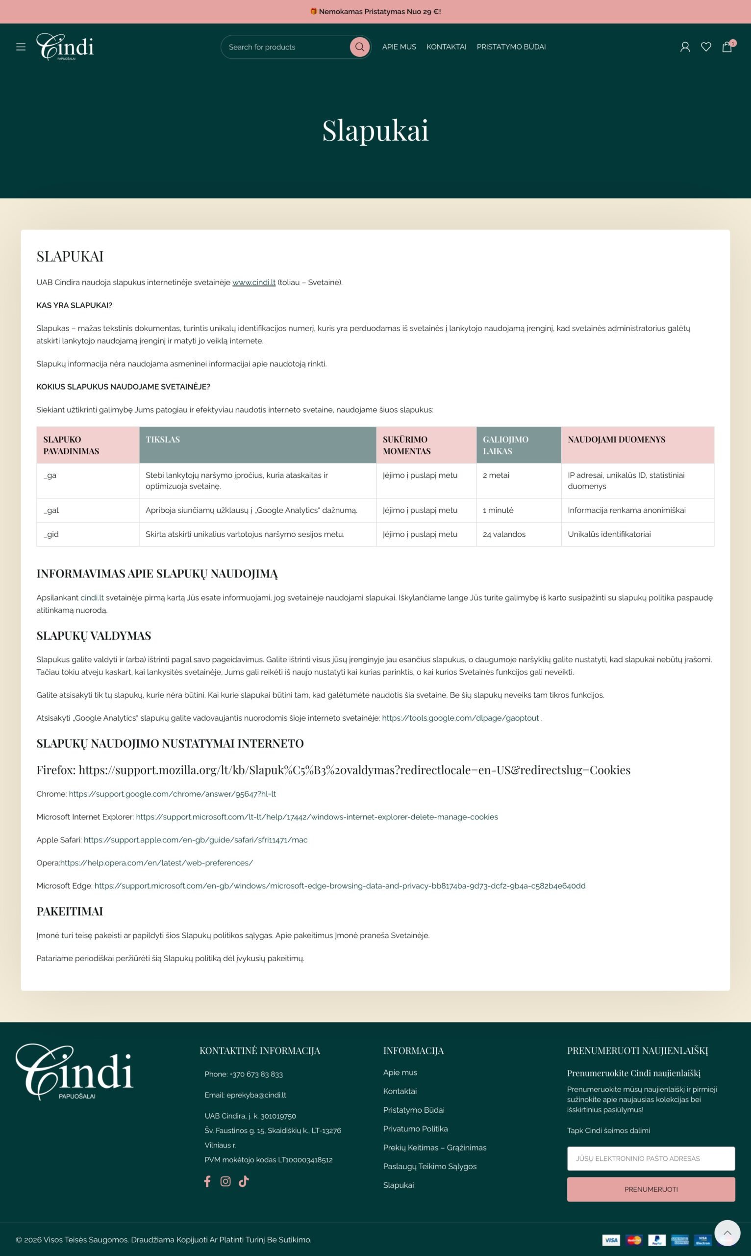 Cindi – tai Lietuvoje pozicionuojamas papuošalų prekės ženklas, kurio pagrindinė komunikacija remiasi emocija, estetika ir kasdieniu elegancijos pojūčiu. Pagrindiniame puslapyje aiškiai komunikuojama prekės ženklo kryptis – „papuošalai, kurie ne tik puošia kūną, bet ir džiugina širdį“, o visa parduotuvės struktūra orientuota į moterišką, vizualiai jautrią ir stilių vertinančią auditoriją. Svetainėje taip pat išskiriamos papuošalų kategorijos, tokios kaip apyrankės, auskarai, grandinėlės, kaklo papuošalai, žiedai, natūralūs akmenys, pakabukai ir plaukų aksesuarai.