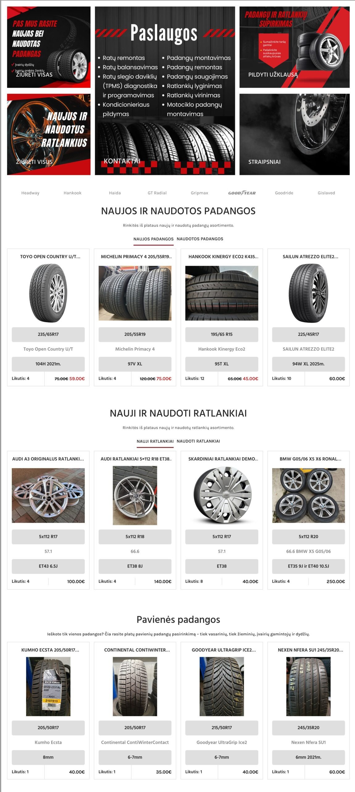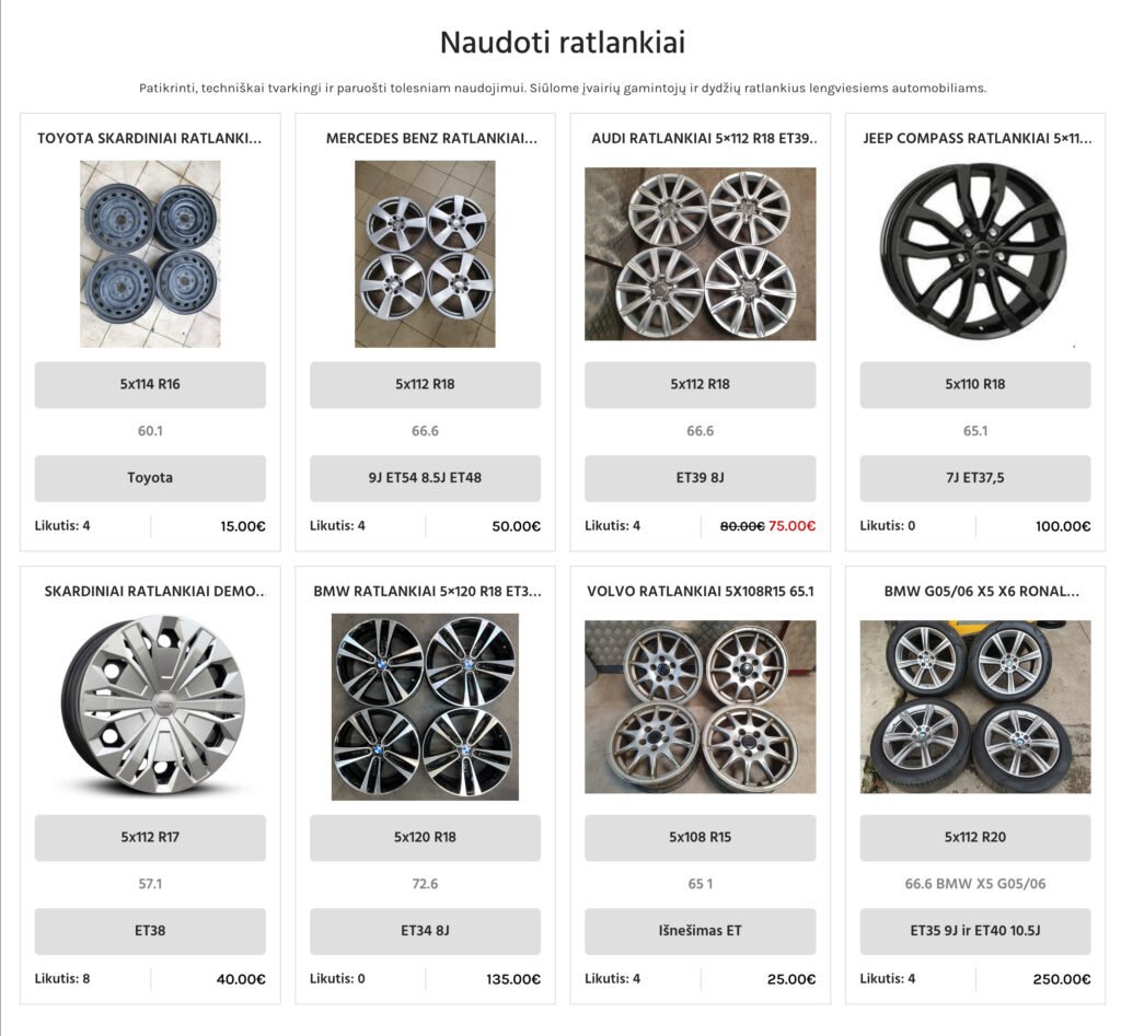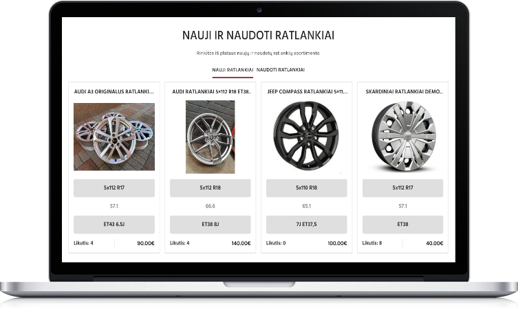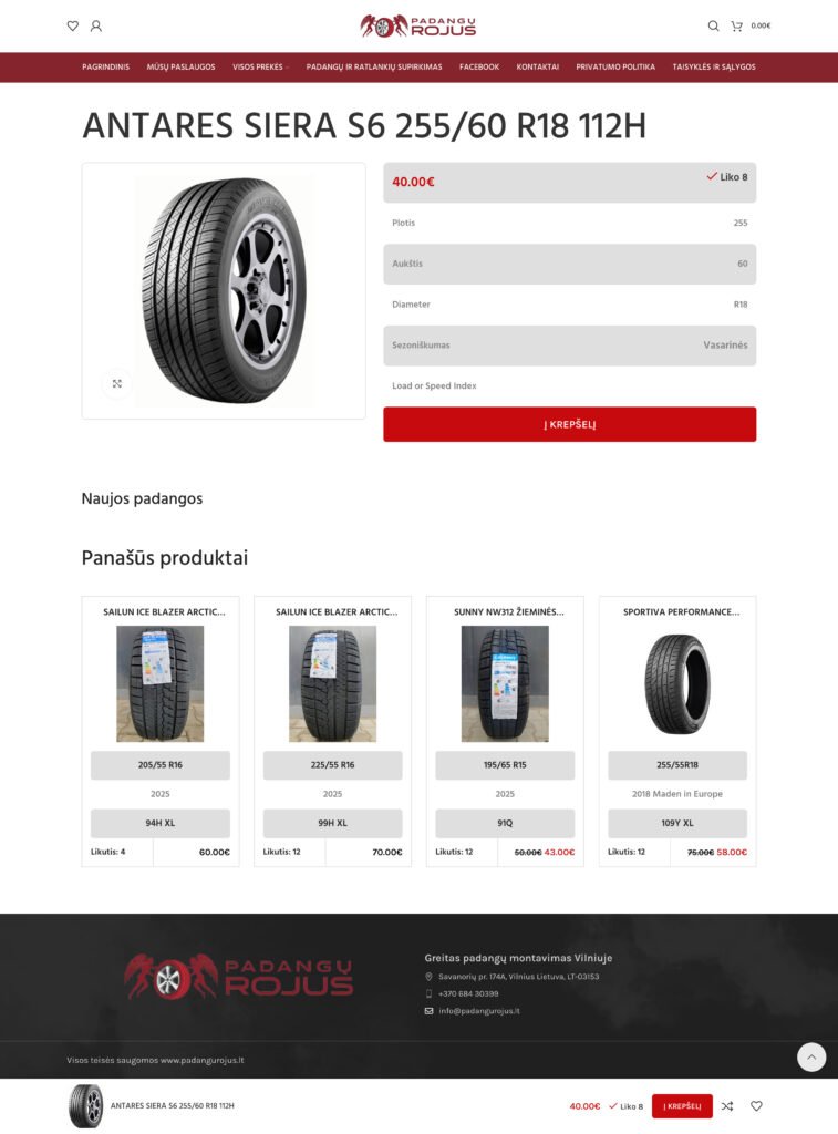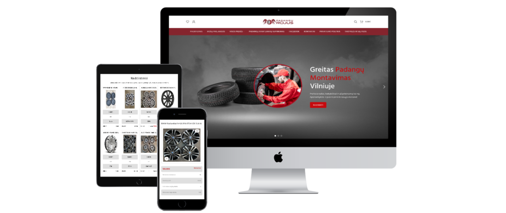 Sukurta svetainė veikia kaip efektyvus pardavimo įrankis, leidžiantis vartotojams greitai ir patogiai rasti reikalingas padangas.